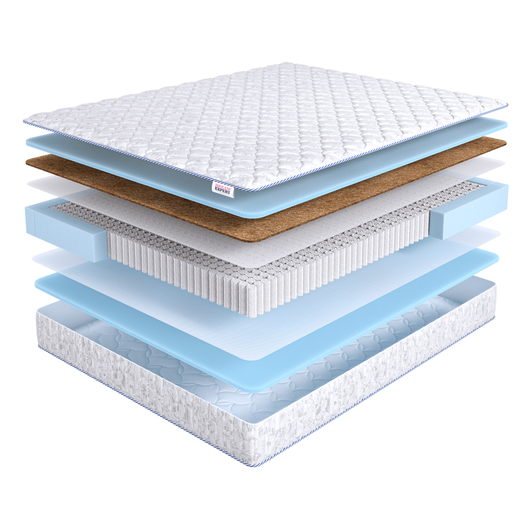 Ортопедический пружинный матрас DREAMEXPERT Kombi Mix PS1000 обладает независимым пружинным блоком «мультипокет», который обеспечивает максимально эффективную поддержку вашего тела во время отдыха. С одной стороны матраса используется латексированная кокосовая койра для создания жесткости выше среднего уровня, а с другой – искусственный латекс для средней жесткости.