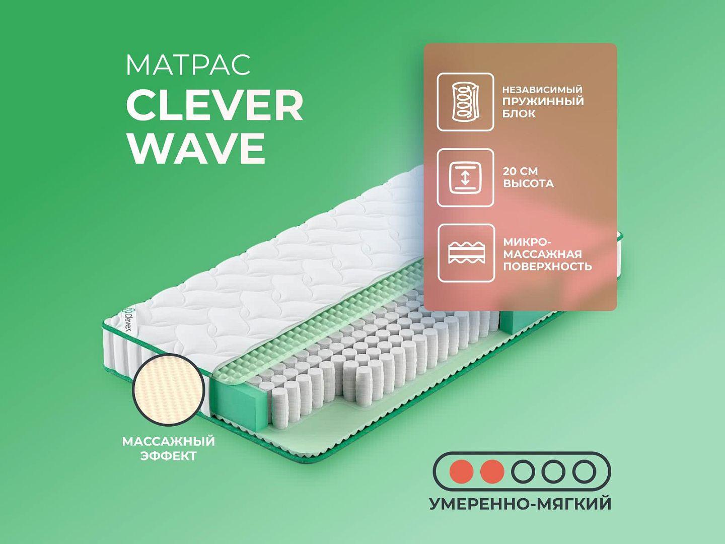 Фабрика Clever получила заслуженную репутацию, благодаря применению новых технологий и безупречному соблюдению стандартов качества. Clever Wave — образец продукта с лучшими характеристиками и доступной ценой, матрас создан из дышащих тканей, с эффектом вентиляции.