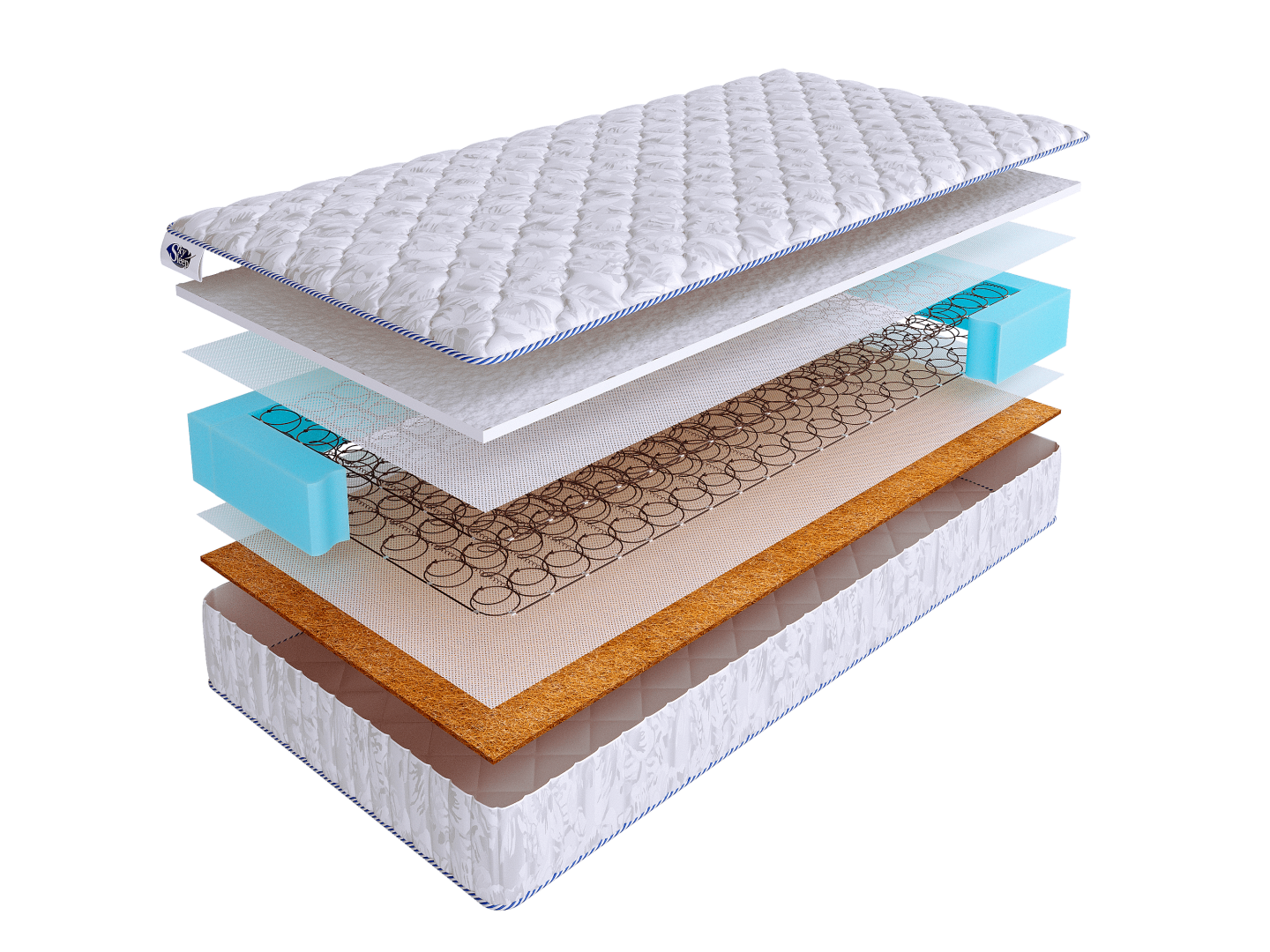 Матрас START FIRM BS умеренно-высокой жесткости выполнен их экологичных материалов: струттофайбера и латексированной кокосовой койры. Струттофайбер – современный, гипоаллергенный материал, обладающий высокой прочностью и отличной воздухопроницаемостью. Плотный и упругий прессованный материал хорошо распределяет нагрузку на пружинный блок благодаря вертикальному расположению волокон. Сторона матраса с кокосовой койрой подойдет для тех, кто любит спать на жесткой поверхности или имеет проблемы с осанкой. Кокосовая койра обладает бактерицидными свойствами, что способствует поддержанию благоприятного микроклимата спального места.
