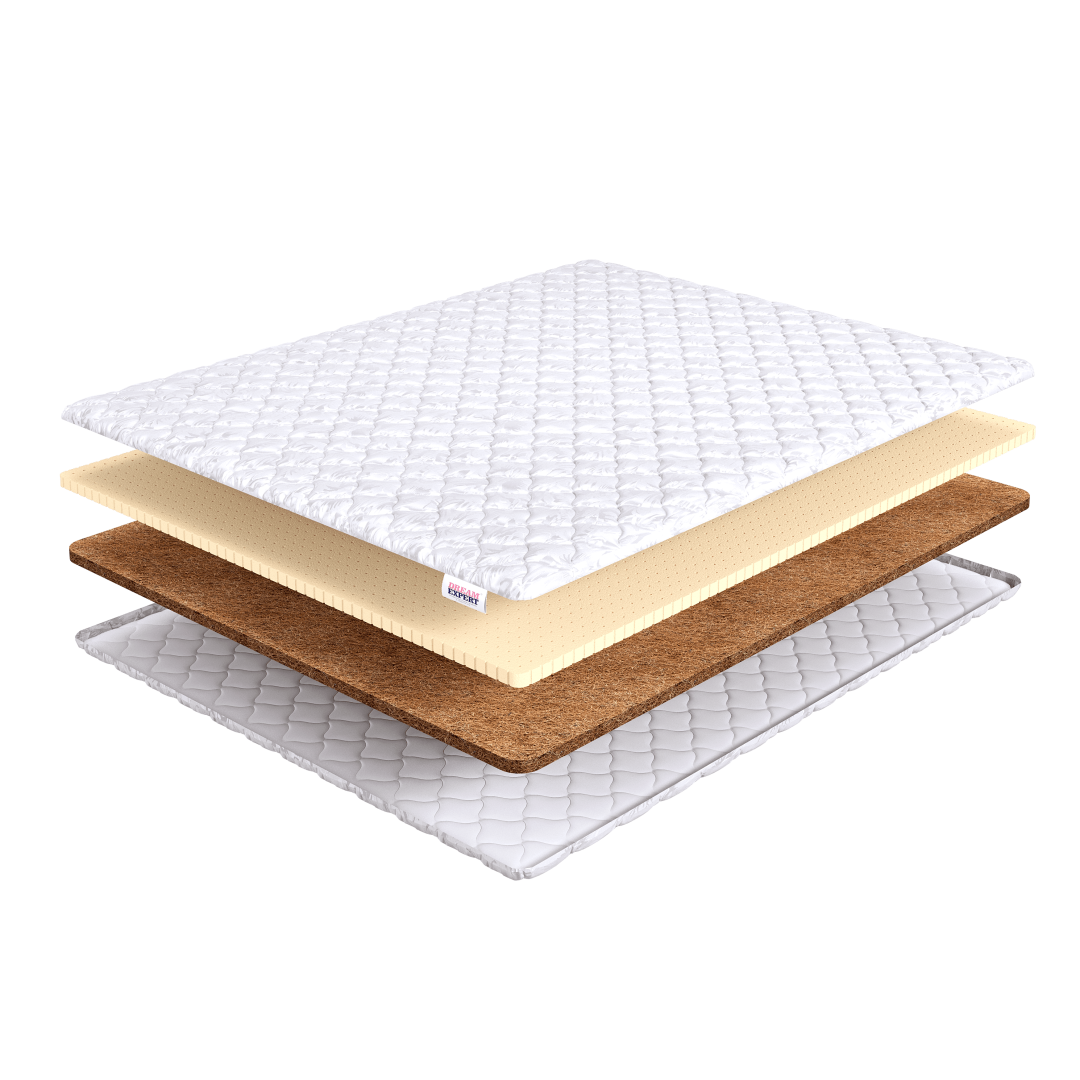 Топпер-матрас от производителя DREAMEXPERT под названием Топпер Cocos + Latex – это уникальное сочетание латексированной кокосовой койры и натурального латекса, которое обеспечивает разную двустороннюю жесткость. Со стороны латексированной койры матрас обладает высокой жесткостью, а со стороны натурального латекса – средней.